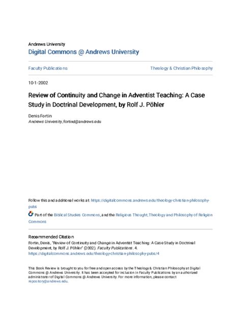 Read Continuity and Change in Adventist Teaching: A Case Study in Doctrinal Development Nook Open Library